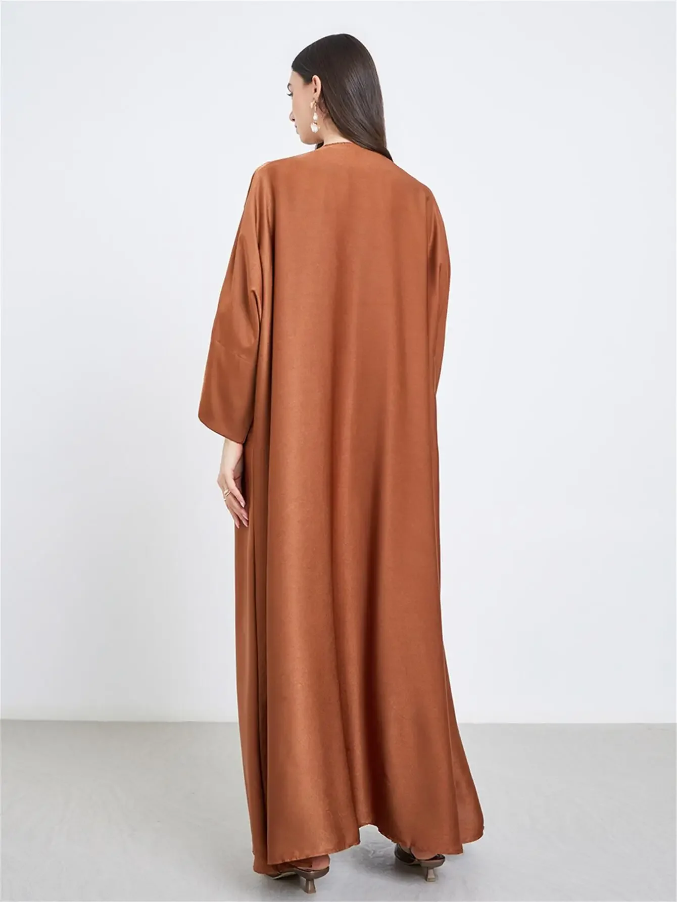 Middle Eastern Full Sleeve Loose Abaya Muslim Women Solid Open Front Abayas Casual Kaftans Jilbabs Ethnic Islamic Maxi Dresses